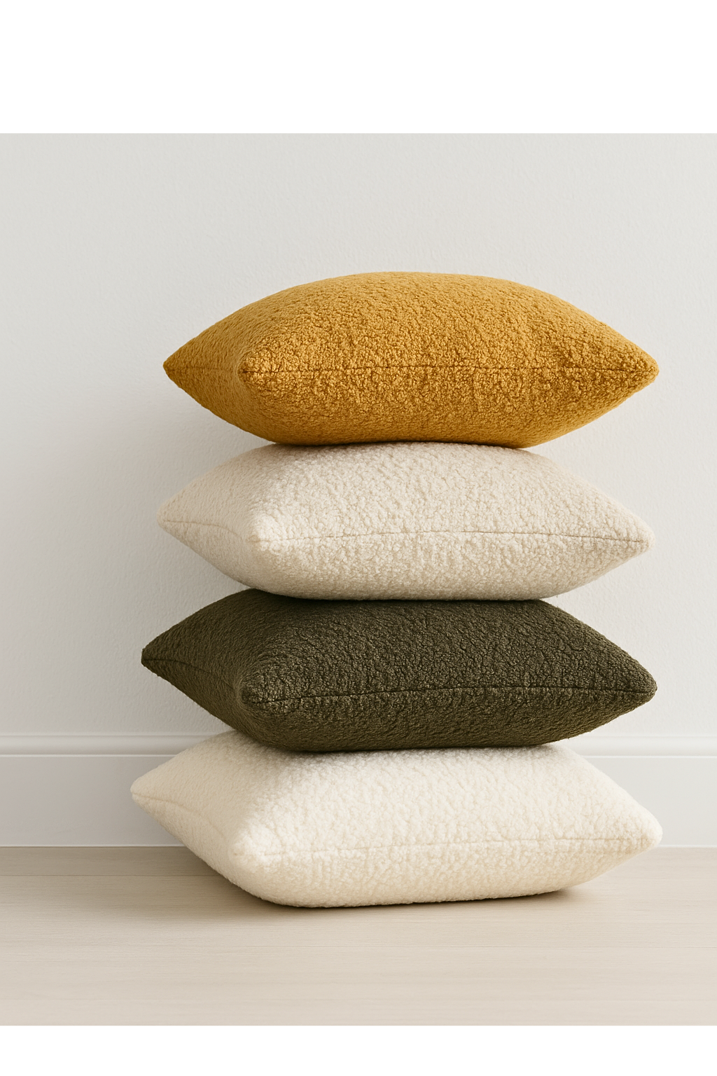 Experience pure elegance with Boucle All Day, our exclusive collection of luxurious boucle throw pillows featuring a variety of textures and colors.