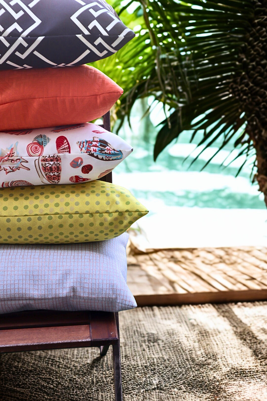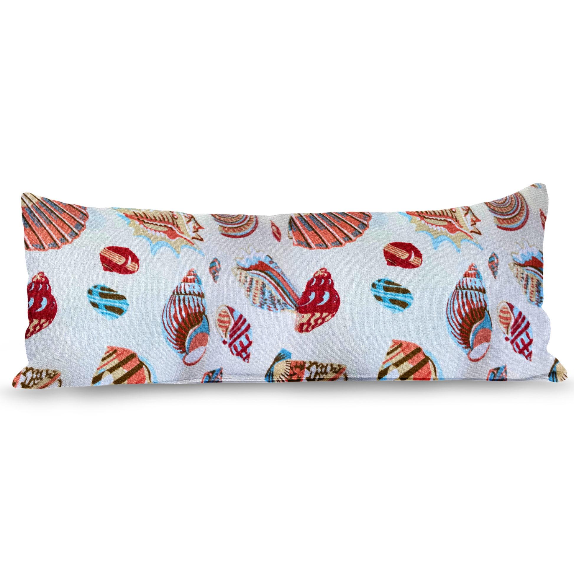Featuring vibrant seashell motifs in sun-washed reds, corals, and aqua blues, this lumbar pillow is made for lounging under the sun. Crafted from durable, weather-friendly fabric, perfect for patios, porches, or poolside moments. Finished with a zipper closure for easy removal and cleaning.